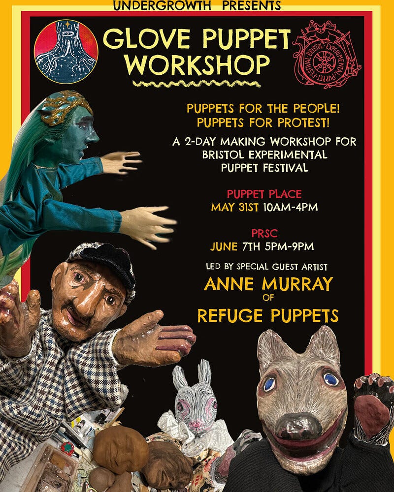 As part of the Bristol Experimental Puppet Festival, Undergrowth is bringing Irish-American puppet maker Anne Murray to Bristol for a two-day glove puppet workshop — and it promises to be something a bit special.