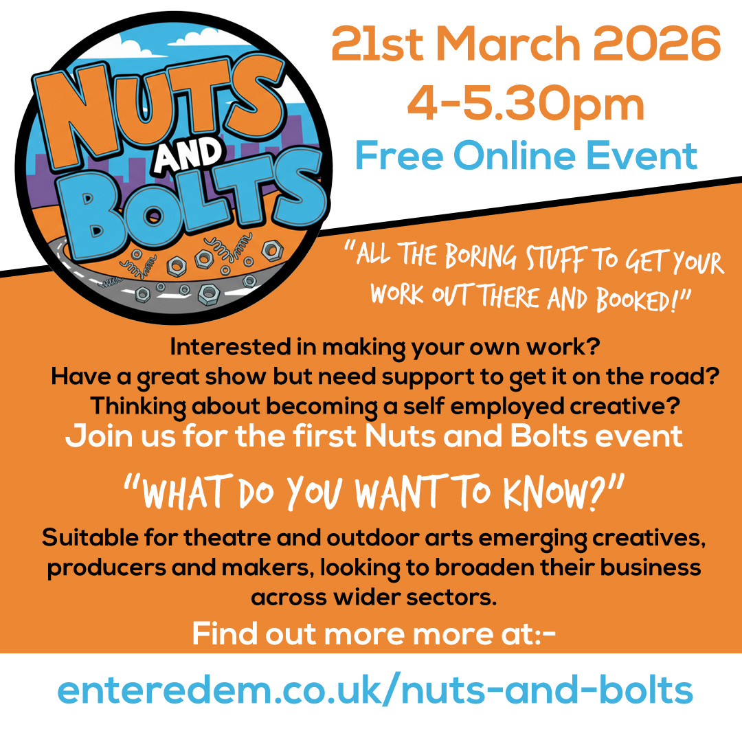 Nuts & Bolts is a volunteer-led artist network offering guidance and support to freelance artists and small companies interested in producing and touring their own work.