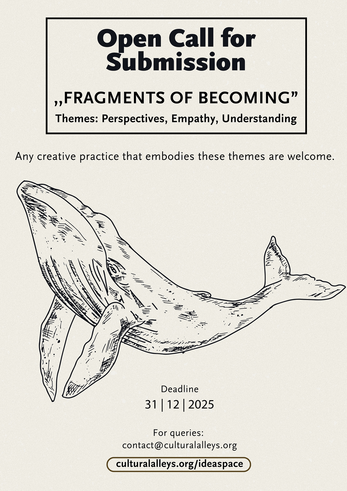 Our friends at Cultural Alleys have extended a warm invitation to creatives across the world—including our members—to contribute to their upcoming virtual exhibition, Fragments of Becoming. This open call centres on three interconnected themes: Perspectives, Understanding, and Empathy.